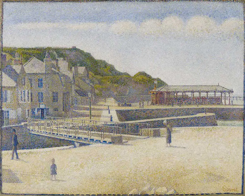 In his short life, Georges Seurat (1859 – 1891) finished approximately 45 oil canvases. Just over half of these were created during his visits to the Channel coast. Seurat’s seascapes, however, seldom receive the attention they deserve when displayed alongside his better-known, much larger paintings A Sunday on La Grande Jatte, Bathing, Asnières, Le Cirque and La Chahut. These popular works show Parisians enjoying the outdoors, the circus and can-can dancers. While these renowned works depict Parisians enjoying all kinds of leisure activities, the ‘marines’ – depicting harbour and sea views – are almost completely devoid of people. Is there an explanation for this disparity?