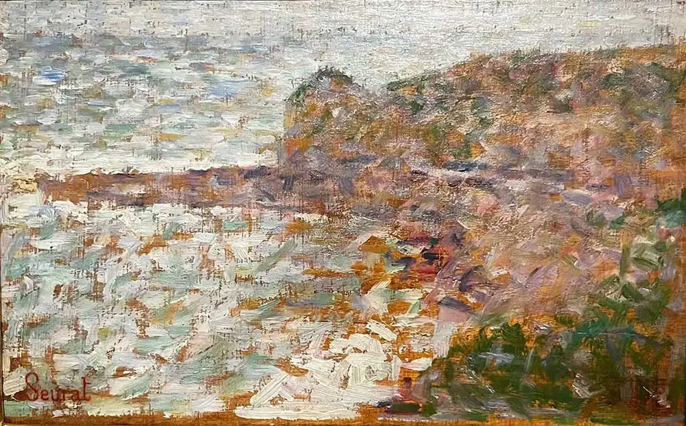 It was customary for artists to leave Paris during the summer in search of fresh motifs along the northern coast of France. Seurat was already familiar with Brittany, having spent his military service there. In 1885 he decided to explore the coast of Normandy where he found the small fishing village of Grandcamp (not far from Omaha beach where the Americans landed on D-day in 1944). It was off the beaten track and it offered the solitude he sought.