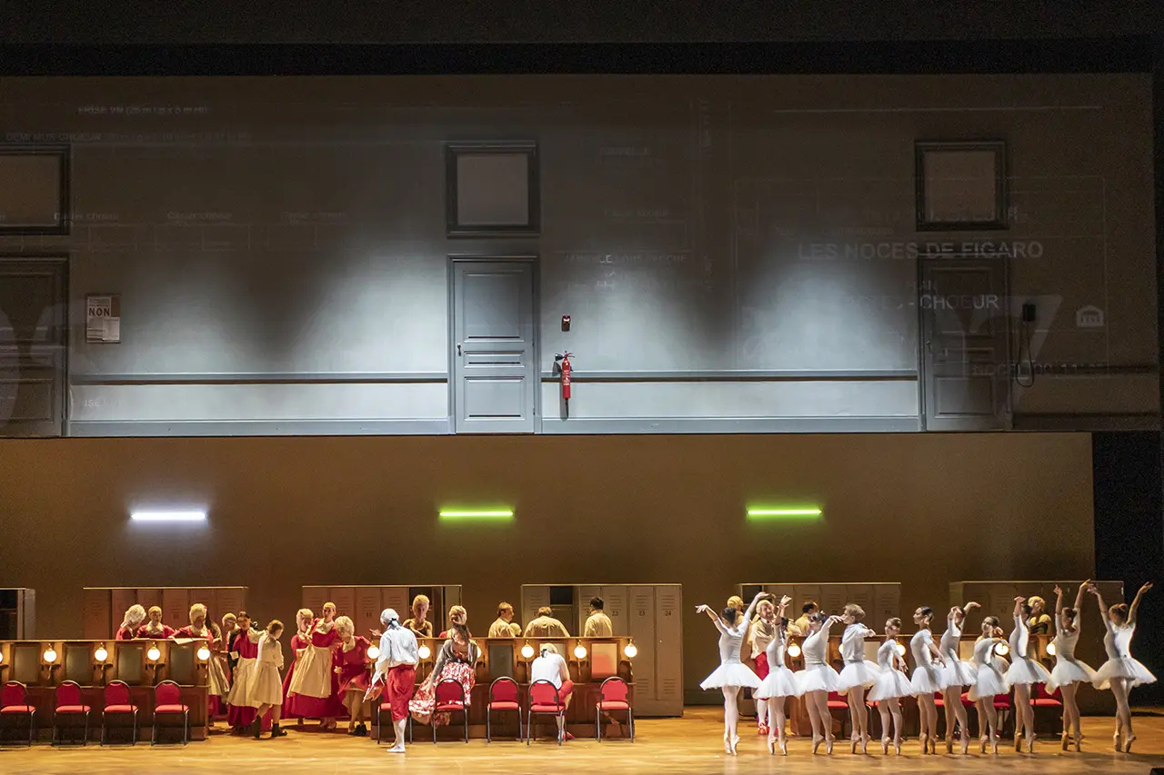 Netia Jones is the set designer, costumier and director (!) of Opéra National’s production and she places the action backstage at the Palais Garnier, Europe’s most opulent and storied opera house (known to many through The Phantom of the Opera). It’s a brilliant move because the building, designed by Charles Garnier, is a ¨grand spectacle¨ in its own right. The Figaro souvenir programme suggests that the edifice’s ¨splendour resembles an allegory of political and male power¨. That may be debatable, but the The Marriage of Figaro‘s central themes – love, infidelity and forgiveness – are universal and never feel dated. The underlying themes of hierarchy, power and above all gender dynamics, however, certainly lend themselves to reinterpretation.